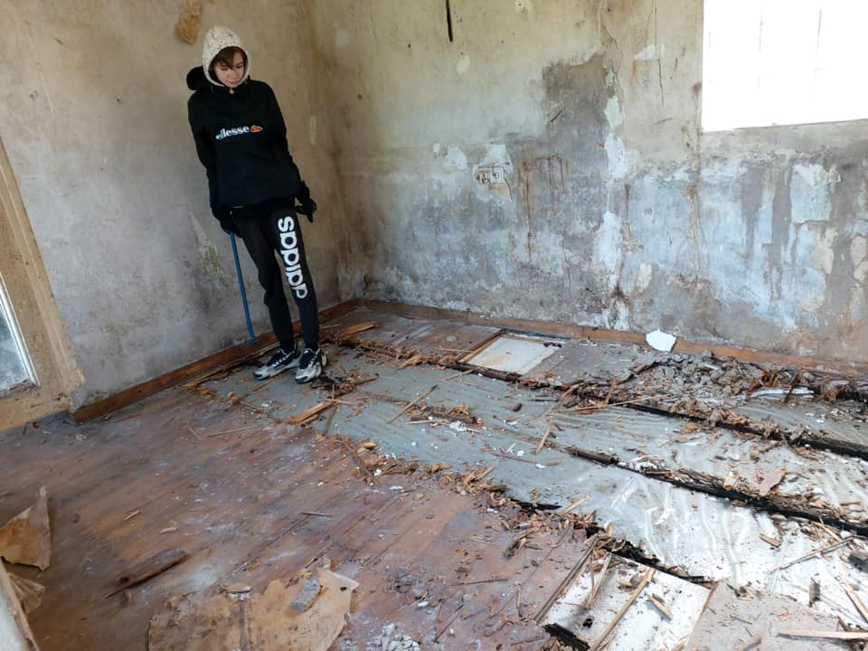 Die Gute Nachricht ist, es war kein Abriss nötig. Nachdem das Dach wieder dicht war und die Wände wieder trocken, begann der Aufbau. Wände verputzen, neue Decke anbringen und einen neuen Boden legen.
